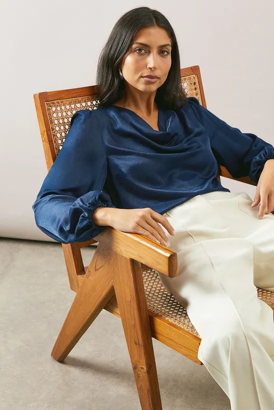 - Elegant cowl neckline that drapes beautifully for a sophisticated silhouette