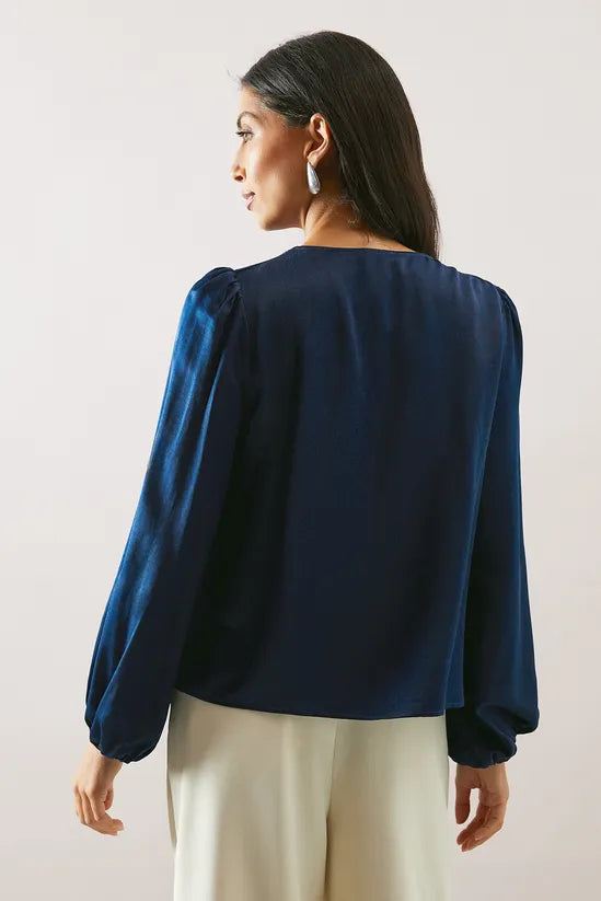 - Statement balloon sleeves with delicate gathered cuffs for a touch of drama